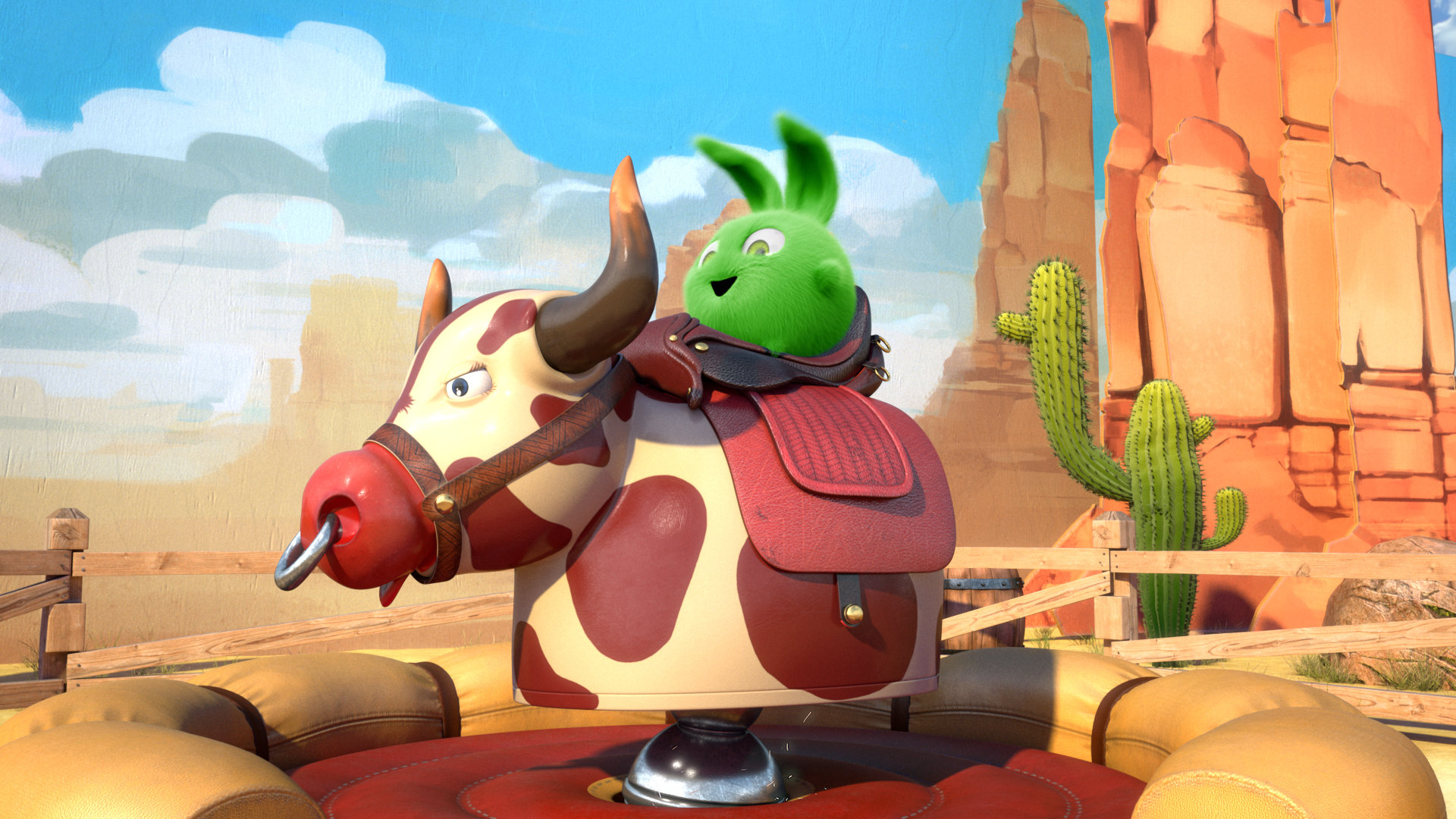 The Sunny Bunnies discover a Wild West attraction in the park and put on cowboy hats. As they complete various tasks and win prizes, Hopper finds that his Wild West skills are rusty.